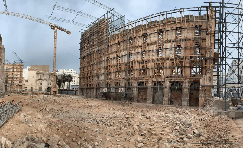 The solution was provided by a consortium, led by Freyssima (Freyssinet Morocco), with SPTS and two sister companies from Soletanche Freyssinet: Soletanche Bachy and Sixense Group. Freyssima supervised the demolition of the ruins and the initial works to secure the façade, while SOLSIF MAROC (Soletanche-Bachy Morocco) was called out to manage the ground works and the wall shoring for two basement levels for the future hotel. Both relied on Sixense to make sure that all operations were running well, thanks to the installation of a monitoring system on the façade and nearby buildings.